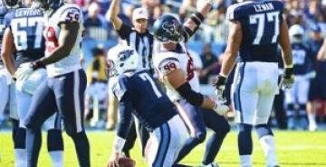 J.J. Watt comemora sack contra os Titans com selfie e manda recado a calouro