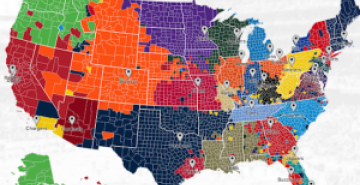Mapa feito com o Twitter mostra os times mais populares por condado nos Estados Unidos