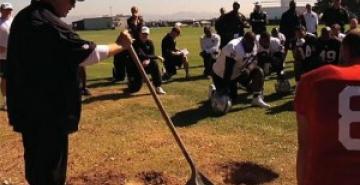 Tony Sparano, técnico interino dos Raiders, faz enterro de bola de futebol americano