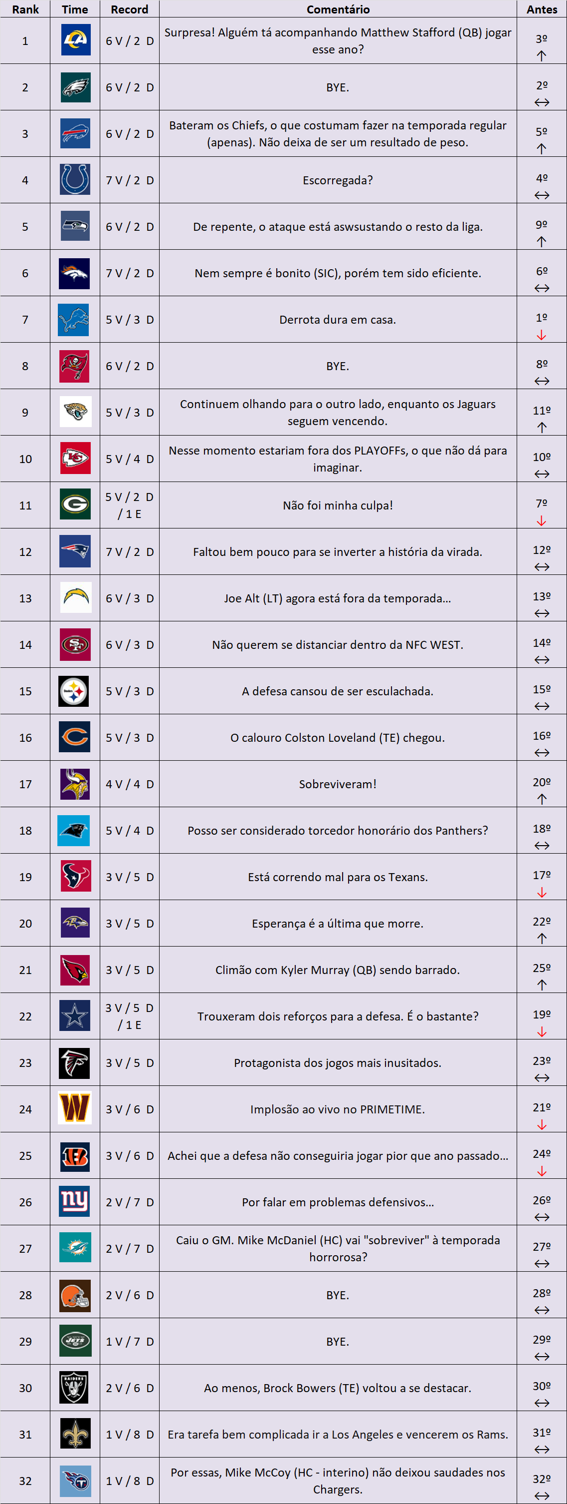 Time que mais subiu: Cardinals e Seahawks – 4 posições cada