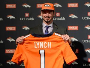 Round 1, Pick 26 Paxton Lynch QB -Memphis Os Broncos deram um trade up com os Seahawks e pegaram o seu QB do futuro, resta saber o quão distante  é esse futuro. Lynch ainda é muito cru e precisará de 1 ou 2 anos até estar pronto pra NFL. Curiosamente ele têm a mesma altura, 2,01m (6'7"), que Brock Osweiler. Será coincidência ou John Elway realmente gosta de quarterbacks muito altos? Resta saber se a novela dos Broncos em relação à posição acabou ou vem mais capítulos por ai. Round 2, Pick 63 Adam Gotsis DT -Georgia Tech Se penso que Karl Joseph (S) foi um reach dos Raiders os Broncos levaram a palavra a outro nível. Gotsis era tido como uma escolha de 4°-5° round, outro motivo de estranheza que é que ainda havia muitos defensive linemen livres nessa altura do draft. Ele vem para entrar no lugar de Malik Jackson que foi para os Jaguars. Round 3, Pick 98 Justin Simmons FS -Boston College Round 6, Pick 219 Will Parks S -Arizona Simmons tido como um hibrido provavelmente jogará como safety nos Broncos e poderá ser titular caso Darian Stewart saía na free agency de 2017. Parks peca na parte atlética, porém é muito versátil. Deve lutar por um lugar no special teams para depois tentar mais snaps na defesa. Round 4, Pick 136 Devontae Booker RB -Utah Round 5, Pick 144 Connor McGovern OG -Missouri Round 6, Pick 176 Andy Janovich FB -Nebraska Ronnie Hillman e C.J. Anderson tiveram um 2015 muito irregular abrindo espaço para Booker, caso se mantenha saudável, brigar pela posição de RB titular. McGovern vem para ocupar a vaga deixada pela saída de Evan Mathis. Janovich reforça a vontade de Gary Kubiak de correr mais e melhor com a bola na próxima temporada. Também poderá ser usado nos special teams. Round 7, Pick 228 Riley Dixon P -Syracuse Britton Colquitt teve um boa temporada em 2015, porém ja tem 31 anos e um cap hit de US$4 milhões. Dixon vem pra brigar com Will Johnson pela vaga.