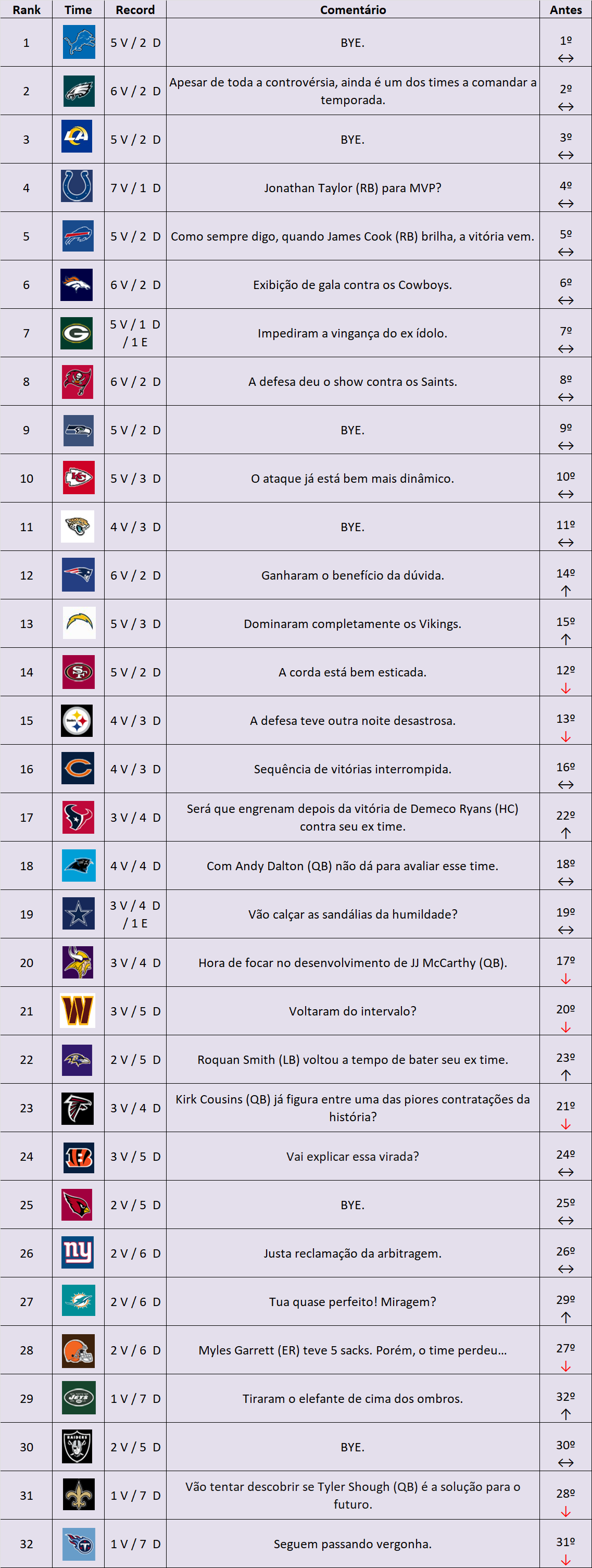 NFL Power Ranking 2025 - Semana 8